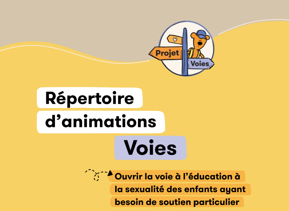 Guide Répertoire d’animations Voies Banque d’idées pour animer des ateliers dynamiques et structurés ciblant l’éducation à la sexualité des enfants ayant besoin de soutien particulier.