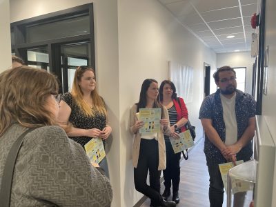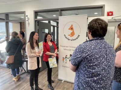 Le Centre d’appui aux enfants et à la jeunesse (CAEJ) de Marie-Vincent de la Montérégie a célébré son premier anniversaire le 15 mars! Près de 60 partenaires et donateurs·trices ont pris part à cette journée « portes ouvertes », lors de laquelle plusieurs visites guidées ont été réalisées par les cliniciennes de Marie-Vincent.
